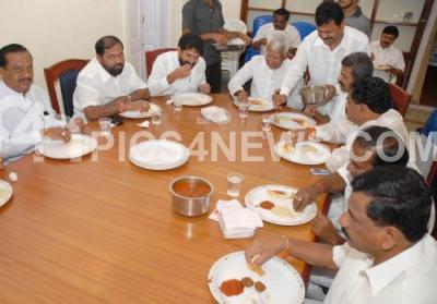 Photo Caption : BJP MLA's having break fast at CM Yeddyurappa's Residence, in Bangalore on Monday 19th Nov 2007 Pics: www.pics4news.com