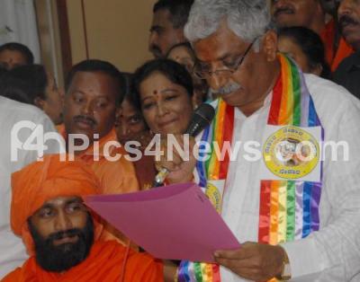 Photo Caption : MD Laxminarayan, nominated MLC seen taking oath as MLC at Committee Room, Vidhana Soudha, in Bangalore on Wednesday 22nd August 2012