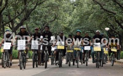 Photo Caption : Members of India for Safe Food participating in cycle rally to create awareness on safe food at Cubbon park, in Bangalore on Sunday 26th August 2012