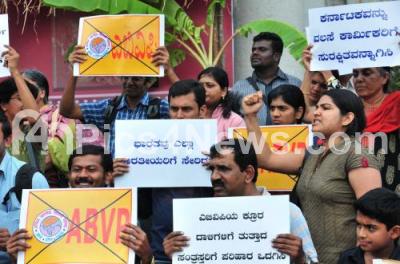 Members of Praja Rajakiya Vedike seen protesting against ABVPs brutal attacks on migrant workers in the train, at Town Hall, in Bangalore on Saturday 1st September 2012
