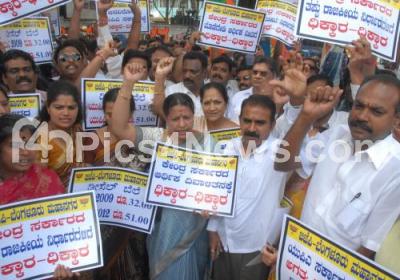 Photo Caption : Members and Leaders of Bangalore City BJP, seen protesting against Hike of Diesel Prices at SBM Circle, in Bangalore on Friday 14th September 2012