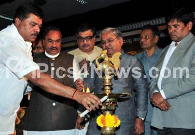 Photo Caption : KS Eshwarappa, Deputy Chief Minister with M Govind Karajole, Minister, Dr Hemachandra Sagar, MLA, D Venkateshmurthy, Mayor and others seen lighting lamp to inaugurate the Research Center and Kanaka Kirana Programme at Nayana, in Bangalore on Friday 14th September 2012