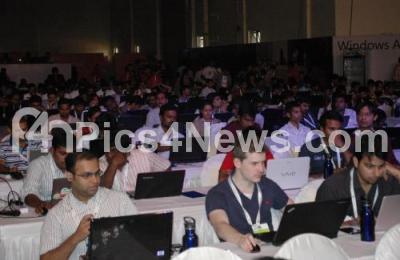 Photo Caption : Windows Developers in Action, for more than 3500 developers code nonstop for 18 hours, for their entry in Guinness Records at Karnataka Trade Promotion Organisation, in Bangalore on Friday 21st September 2012