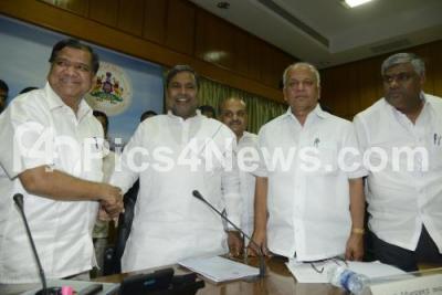 Event Description : Jagadish Shettar, Chief Minister of Karnataka with Siddharamaiah, Opposition Leader, HD Revanna, JDs Opposition Leader and others seen during All Party Meeting for Cauvery Issue at home office, Krishna, in Bangalore on Friday 21st September 2012