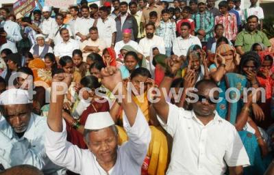 Photo Caption : Members of Sumanahalli Society seen protesting against State Government against infringement into the rights of minority Christian Community as the government has decided that 45 Acres of society will be taken back leaving it with only 5 Acres, protest held at Town Hall, in Bangalore on Monday 24th September 2012