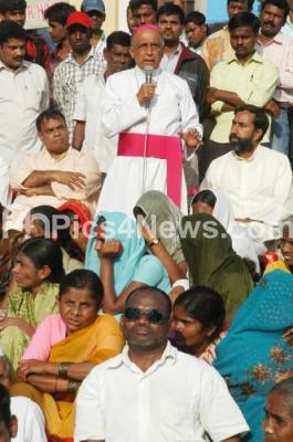 Photo Caption : Archbishop Bernard Moras, President with Fr George Kannanthanam, Director and others seen protesting against State Government against infringement into the rights of minority Christian Community as the government has decided that 45 Acres of society will be taken back leaving it with only 5 Acres, protest held at Town Hall, in Bangalore on Monday 24th September 2012