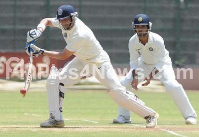 Photo Caption : Hrishikesh Kanitkar, Captain, Rajasthan, on his way to 73 runs against Rest of India for the Irani Cup cricket at M Chinnasamy Stadium, in Bangalore on Monday 24th September 2012
