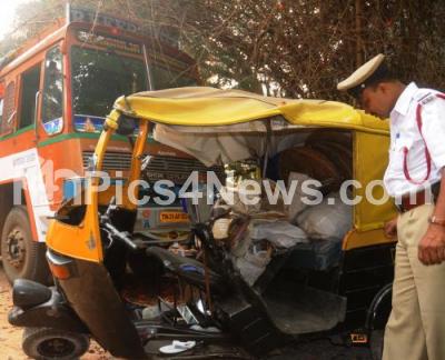 Photo Caption : Police personnel inspecting the Accident, where Lorry striked into an Auto rickshaw, leadind Two death and Five Injured at Chamarajpet police Limits, in Bangalore on Thursday 11th October 2012