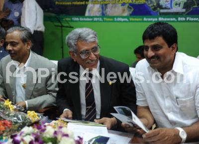 Photo Caption : PJ Dilip Kumar, Director General of Forests with CP yogeshwar, Forest minister, R Sridharan, principal Secretary, Forest Department seen at the launch of Karnataka E Green Watch Aranya Bhavan, in Bangalore on Thursday 11th October 2012
