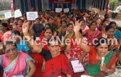 Event Description : Members of Karnataka Rajya Anganvadi Workers and Helpers Federation, protesting to fulfill their demands at Town Hall, in Bangalore on Thursday 11th October 2012