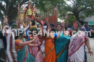 Photo Caption : Devotees seen celebrating Vijayadashami Festival at Ulsoor Lake, in Bangalore on Wednesday 24th October 2012