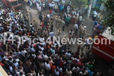 Photo Caption : Crowd gathered on the spot, where Reliance Trends caught with fire at CMH Road, Indiranagar, in Bangalore on Friday 2nd November 2012