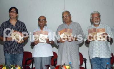 Photo Caption : Prof MH Krishnaiah with HS Venkatesh Murthy, Poet, SG Vasudev, Senior Artist seen releasing Anukta and Kannele by Ravikumar Kashi at Venkatappa Art Gallery, in Bangalore on Thursday 8th November 2012