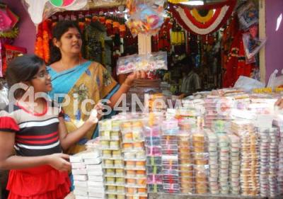 People seen purchasing decorative and Pooja Items, Diyas and Flowers, in Bangalore on Sunday 11th November 2012