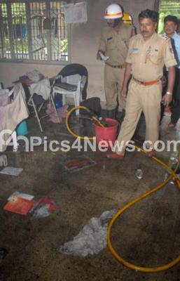 Event Description : Fire personnel seen at the spot where a residence caught with fire, due to short circuit at Vidya Peetha Circle, in Bangalore on Sunday 11th November 2012