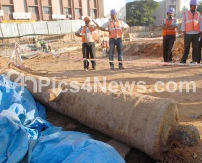 Photo Caption : 18th Century Canon of Tippu Sultans Period found, during the Metro work near Tippu Palace, in Bangalore on Thursday 22nd November 2012