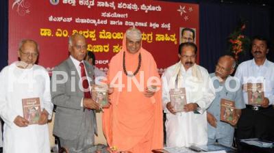 Photo Caption : Sutturu Shivarathri Deshikendra Swamiji with M Veerappa Moily, Union Minister and others seen releasing his book Munnade at JSS Womens College, Saraswathipuram, in Mysore on Sunday 25th November 2012