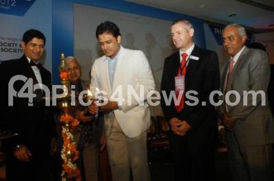 Event Description : Anil Kumble, President. Karnataka State Cricket Academy with Dr Ganesh, CMD, Nethradhama Hospitals, Dr Dirk Muehlhoff, President, Carl Zeiss Meditec and V Srinivasan, MD, Carl Zeiss, India lighting lamp to inaugurate the Launch of ReLEx smile, A revolutionary Refractive Correction Procedure at Leela Palace, in Bangalore on Sunday 25th November 2012