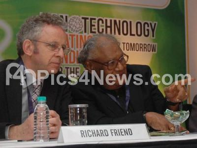 Photo Caption : Prof CNR Rao, Chairman, Scientific Advisory Council to Prime Minister interacting with Prof Richard Friend, Cavendish Professor of Physics, Cambridge University, UK, during the inauguration of Indias flagship event on Nanotechnology at 5th Bangalore Nano 2012 at Hotel Lalith Ashok, in Bangalore on Thursday 6th December 2012
