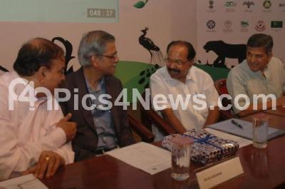 Photo Caption : M Veerappamoily, Union Minister for Petroleum and Natural Gas interacting with Ananth Kumar, MP, during the second Indian bio diversity Congress 2012, also seen Prof R Sukumar, working Chairman, IBC 2012, Anant Hegde Ashihar, Dr vaman Acahrya, Chairman, KSPCB and Dr Balakrishna Pisupati, Chairman, National bio Diversity Authority, Chennai at JN Tata Auditorium, in Bangalore on Sunday 9th December 2012