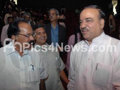 Photo Caption : M Veerappamoily, Union Minister for Petroleum and Natural Gas interacting with Ananth Kumar, MP, during the second Indian bio diversity Congress 2012, also seen Prof R Sukumar, working Chairman, IBC 2012, Anant Hegde Ashihar, Dr vaman Acahrya, Chairman, KSPCB and Dr Balakrishna Pisupati, Chairman, National bio Diversity Authority, Chennai at JN Tata Auditorium, in Bangalore on Sunday 9th December 2012