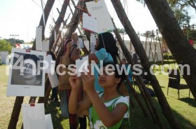 Photo Caption : Visitors seen reading the Autobiographies of eminent personalities, hanged outside Jayamahal Palace, during the Bangalore Literature Festival 2012, in Bangalore on Sunday 9th December 2012