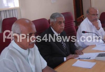 Photo Caption : Justice MN Venkatachalaiah with Retired DGP Mudiyal and others seen during the seminar to Save Democracy and Abolish Corruption at Legislative House, in Bangalore on Saturday 15th December 2012
