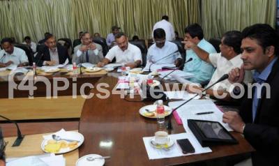 Photo Caption : Jagadish Shettar, Chief Minister with CP yogeshwar, Forest Minister, Anil Kumble, President, KSCA and Forest Department officials seen discussing during the State Wild Life Board Meeting at Home Office, Krishna, in Bangalore on Saturday 15th December 2012