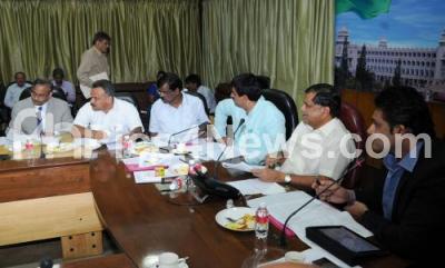 Photo Caption : Jagadish Shettar, Chief Minister with CP yogeshwar, Forest Minister, Anil Kumble, President, KSCA and Forest Department officials seen discussing during the State Wild Life Board Meeting at Home Office, Krishna, in Bangalore on Saturday 15th December 2012