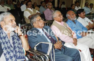 Photo Caption : Prof UR Ananthmurthy with Prof Chandrashekhar Kambar, Jnanpith Awardee, Sitakanth Mahapatra, Former Secretary, Ministry of Culture, GOI and others seen during the Book Talk and Dialogue with Writers session, at Bengaluru Sahityotsava 2012 at Palace Grounds, in Bangalore on Saturday 15th December 2012