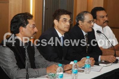 Photo Caption : Raj Kumar Goel, MD, SCR Steels, Dr Vinod Nowal, Director and CEO, JSW Steel, Sevagiri Rao, JMD, JSW Steels and others seen during the press meet on Availability of Iron Ore in the State of Karnataka, press meet held at Hotel lalit Ashok, in Bangalore on Tuesday 18th December 2012