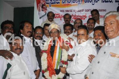 Photo Caption : K Rahman Khan, Union Minister for Minority Affairs being felicitated at Congress office, during his visit to Mysore city on Saturday 22nd December 2012