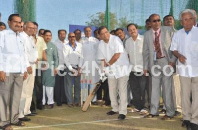Photo Caption : Jagadish Shettar, Chief Minister playing Cricket at the new Karnataka State Cricket Association Platinum Jubilee Pavilion in Hubli on Saturday 22nd December 2012