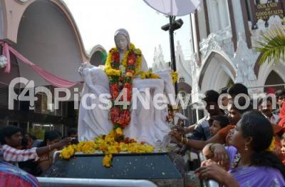 Photo Caption : Devotees touch the feet of Mother Mary and Jesus Christ and take blessings, as part of Christmas festival Celebrations at St Marys Basilica Church, Shivajinagar, in Bangalore on Tuesday 25th December 2012