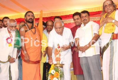 Photo Caption : BS Yeddyurappa, Former Chief Minister lighting lamp to inaugurate the Hanuman Jayanti Celebrations at Palace Kote Anjenaya Temple, in Mysore on Tuesday 25th December 2012