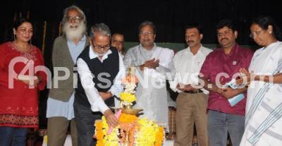 Photo Caption : Muralasiddhappa, Litterateur with Siddharamaiah, Opposition Leader, Prof PV Nanjaraje Urs, Dr Banjagere Jayaprakash and others seen lighting lamp to inaugurate the seminar on Achievements of Opposition Leader Siddharamaiah, in Mysore on Tuesday 25th December 2012