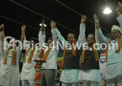 Photo Caption : Ananth Kumar, MP with DB Chandregowda, MP, R Ashok, Deputy Chief Minister of Karnataka, S Suresh Kumar, Law Minister, Katta Subramanya Naidu, BJP MLA and other senior BJP leaders participated in the BJP Convention Meeting at Gayathri Vihar at Palace Grounds, in Bangalore on Thursday 27th December 2012
