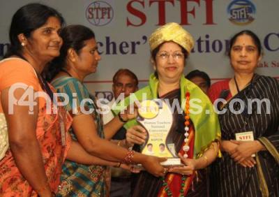 Photo Caption : Meena Chandavarkar, Vice Chancellor, Women University, Bijapur being felicitated by Shantha Sinha, Chairperson, Child Rights and Education and others, during the Women Teachers National Convention at Shikshakara Sadana, in Bangalore on Saturday 29th December 2012