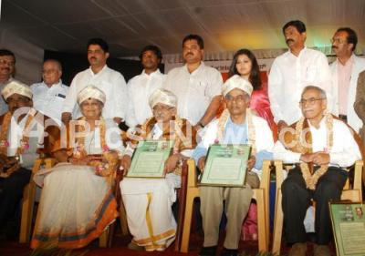 Photo Caption : R Ashok, Deputy Chief Minister with BN Bacche Gowda, Labor Minister with D Venkatesh Murthy, Mayor felicitated Senior Journalists Nagesh Hegde, Dr Vijaya, A Shivanna and GS Narayanswamy, during the 2012 Press Club Awards at Press Club, in Bangalore on Monday 31st December 2012