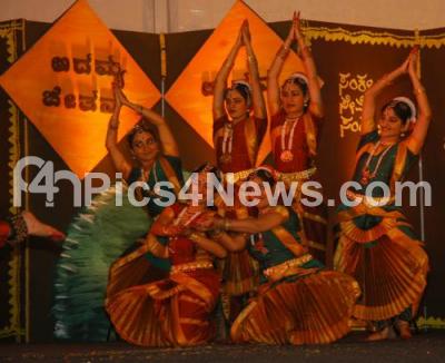 Photo Caption : Cultural Dancers perform, during the Adamya Chetana Utsav Programme, organized by Kannada and Cultural Department at National College Grounds, in Bangalore on Wednesday 2nd January 2013
