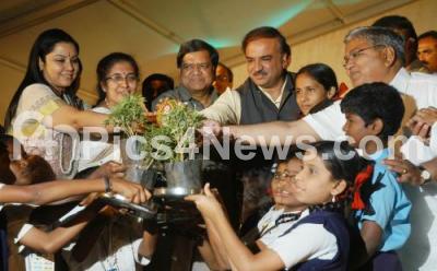 Photo Caption : Tara, President of Karnataka Film Academy with Jagadish Shettar, Chief Minister, Ananth Kumar, MP, Govind Karjol, Kannada and Culture Minister seen watering plants to inaugurate the Adamya Chetana Utsav Programme, organized by Kannada and Cultural Department at National College Grounds, in Bangalore on Wednesday 2nd January 2013