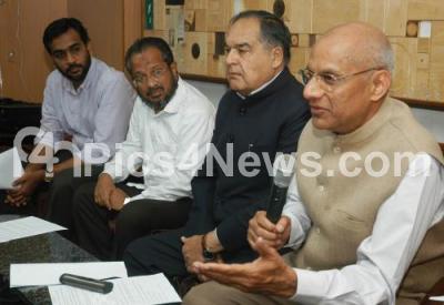 Photo Caption : Mohammed Adeeb, MP, Uttar Pradesh with Colin Gansaves, Advocate, Supreme Court, Nowshad, President, Solidatrity Youth Movement, Arif Ali, JIH Kerala addressing media at Press Club, in Bangalore on Saturday 5th January 2013