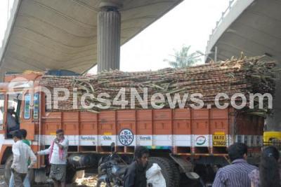 Photo Caption : Sugarcane being brought, for upcoming Sankranti Festival at City Market, in Bangalore on Tuesday 8th January 2013