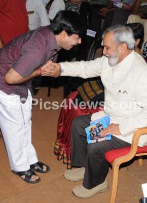 Photo Caption : SA Ramdas, District incharge, Mysore greeting UR Ananthmurthy, Eminent Writer, during the Inauguration of Bahuroopi, National Theatre Festival at Rangayana Kalamandir, in Mysore on Tuesday 8th January 2013