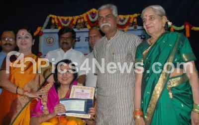 Photo Caption : Dr Lata Rajashekar, Writer being felicitated by Actress B Saroja Devi, Pundalika Halambi, President, Kannada Sahitya Parishath, A Pankaja, Novelist, Prof Dr Neelagiri Talvar and others, during the Saroja Devi Sahitya Prashasti, organized at Kannada Sahitya Parishath, in Bangalore on Tuesday 8th January 2013