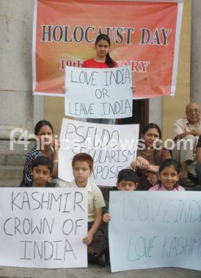 Photo Caption : Students participate in Holocaust Day, as it was on this day in 1990 exposed the hollowness of the secular pretensions of Kashmir Political organizations when the whole Muslim majority came out on the streets raising vicious slogans against the terrified Hindu Minority, particularly insulting to its womenfolk, the mourn was held at Town Hall, in Bangalore on Saturday 19th January 2013