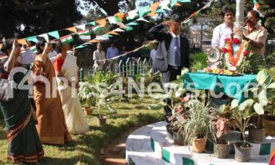 Event Description : Members of Government Ayurveda College saluting National Flag, celebrating 64th Republic Day at College premises, in Bangalore on Saturday 26th January 2013