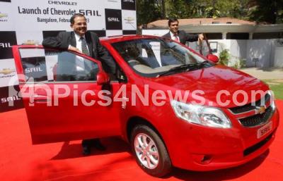 Photo Caption : P Balendran, Vice President, General Motors with Sastry Vempati, Vice President, Program Management, General Motors seen launching the Chevrolet Sail Premium Sedan at Windsor Manor, in Bangalore on Friday 1st February 2013