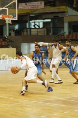 Photo Caption : 27th National Federation Cup Basket Ball Championship, Match Between Indian Overseas Bank and ONGC at Kanteerva Stadium, in Bangalore on Friday 1st February 2013