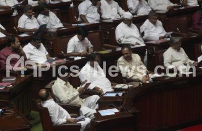 Photo Caption : BJP Ministers Basavaraj Bommai, Vishweshwar Hegde Kageri, Bache Gowda, Arvind Limbavali, Anand ASnotikar, SA Ramdas, Govind Karjol and others seen, during the Joint Session at Vidhana Soudha, in Bangalore on Monday 4th February 2013